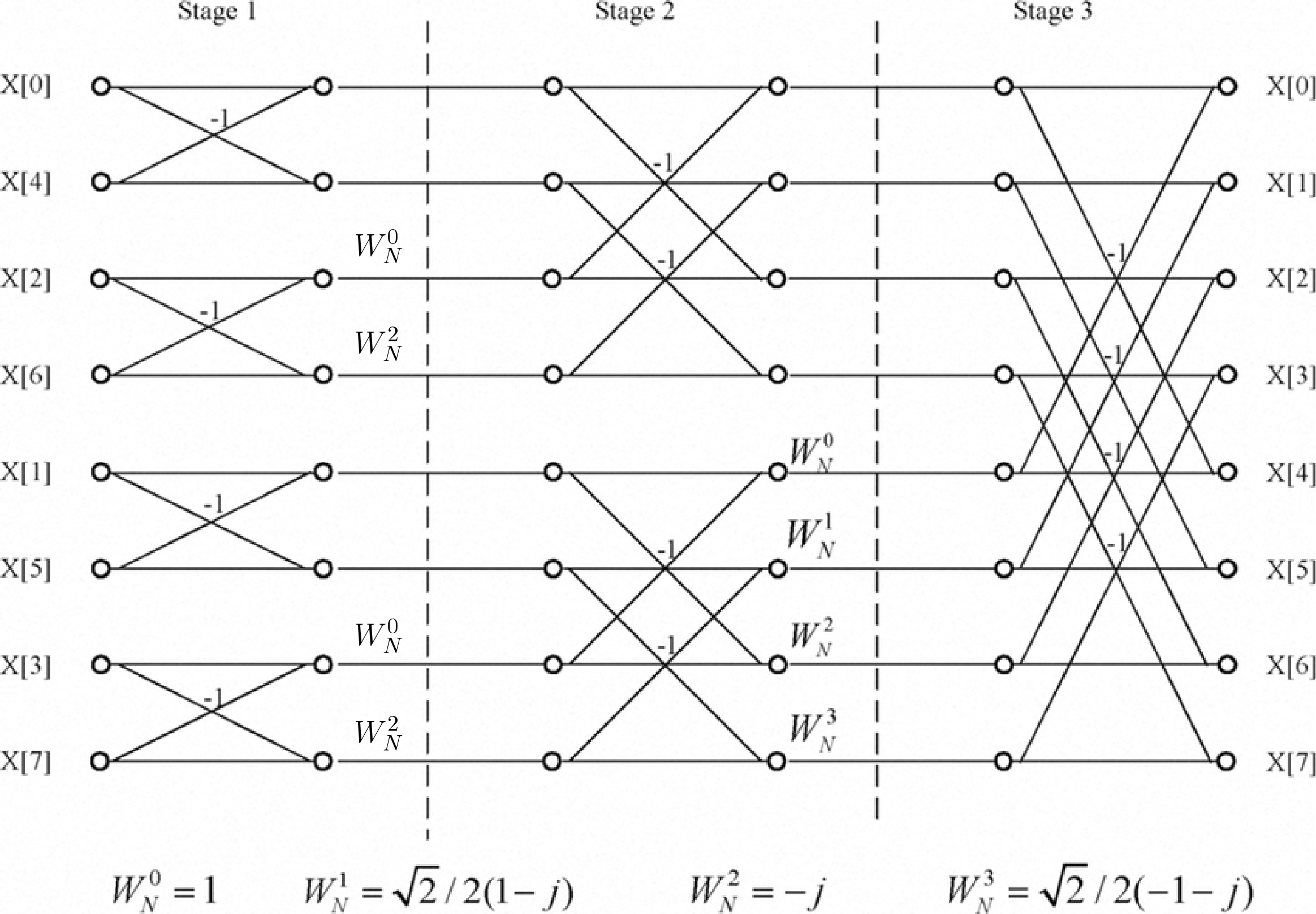 performed. The results of smaller point DFTs are combined to get the result of N-point